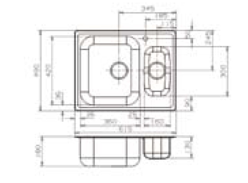 m/skål, Stålvask, 1½ kumme. For under- eller planlimning - Rustfrit stål