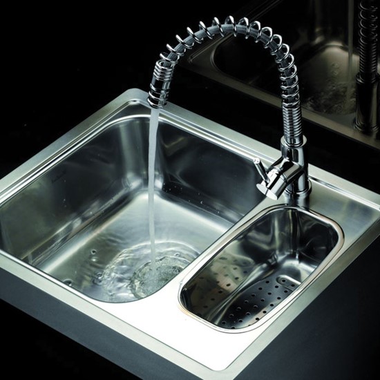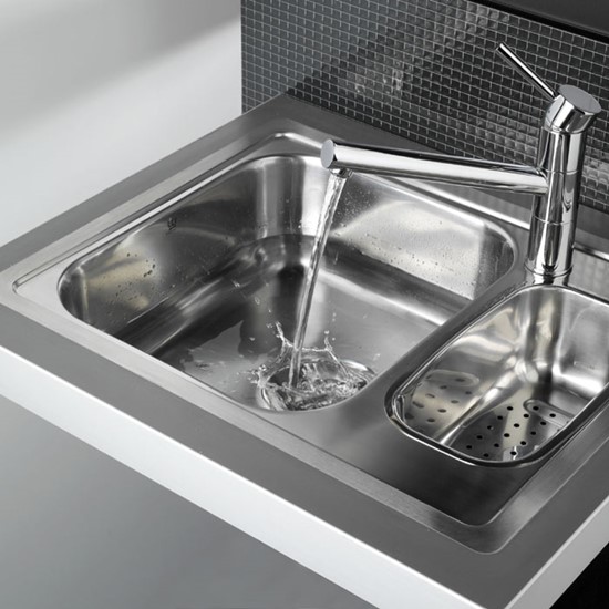 m/løft op & skål, Stålvask, 1½ kumme. For nedlægning - Rustfrit stål