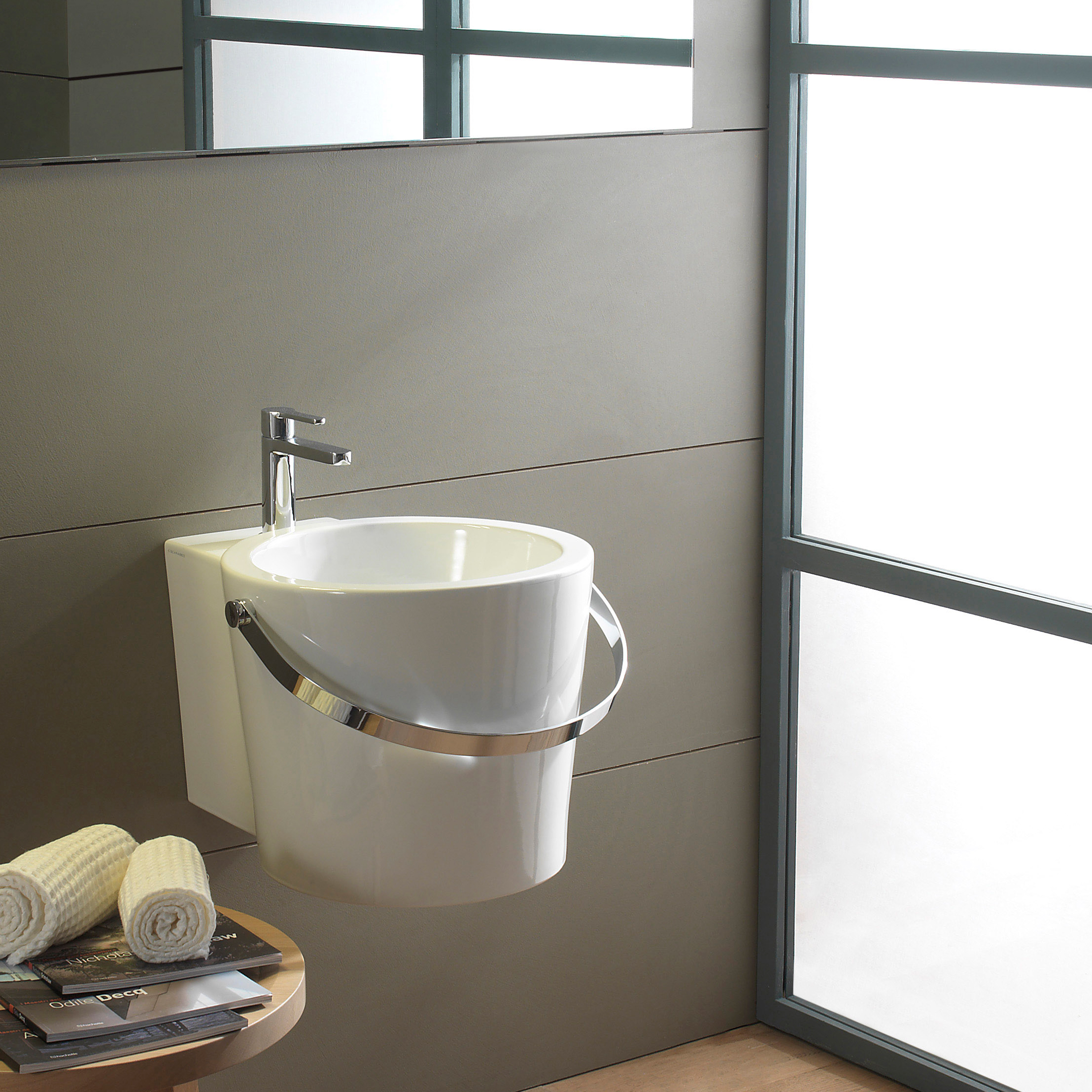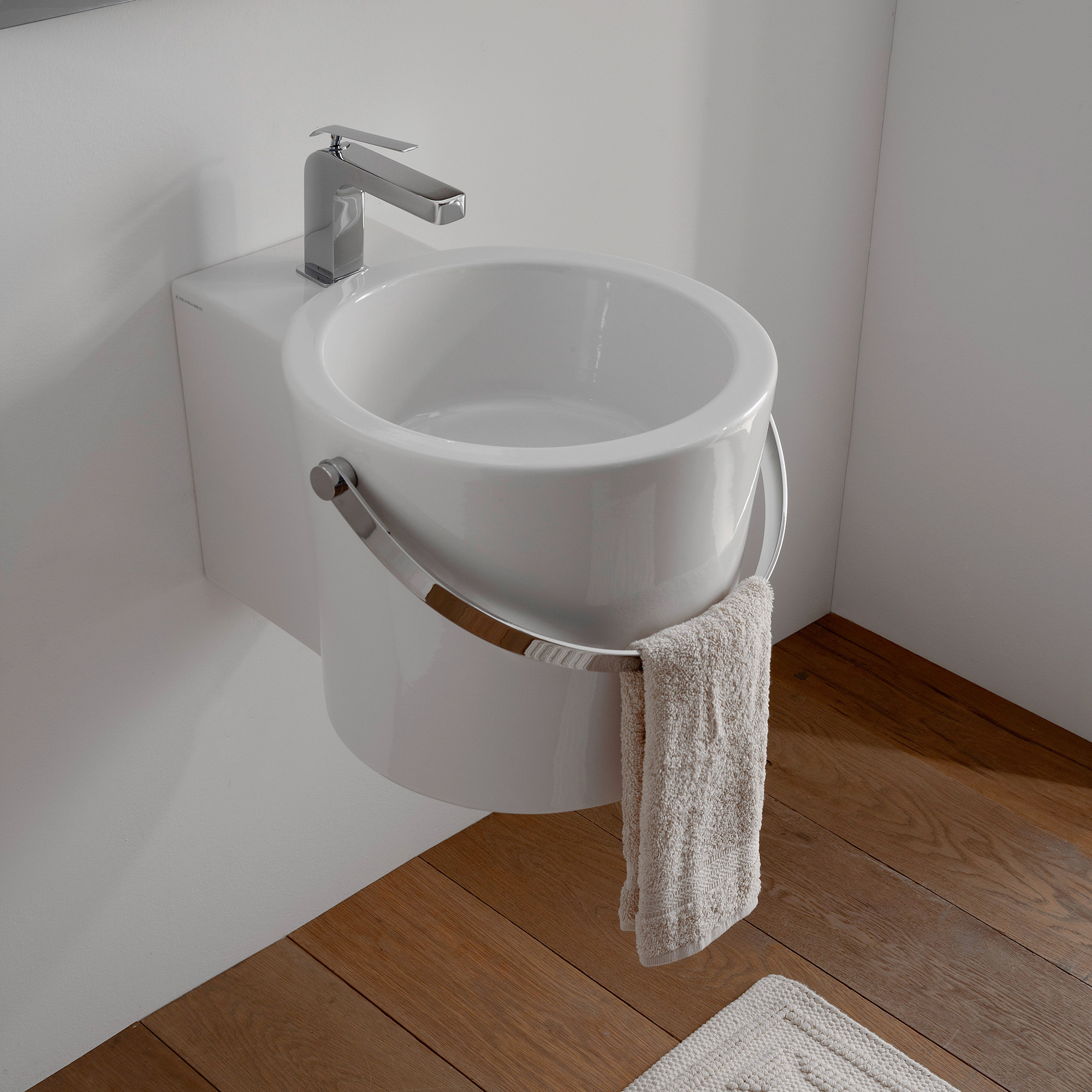 Badvask i hvid porcelæn. For montering på bord eller væg - Hvid porcelæn