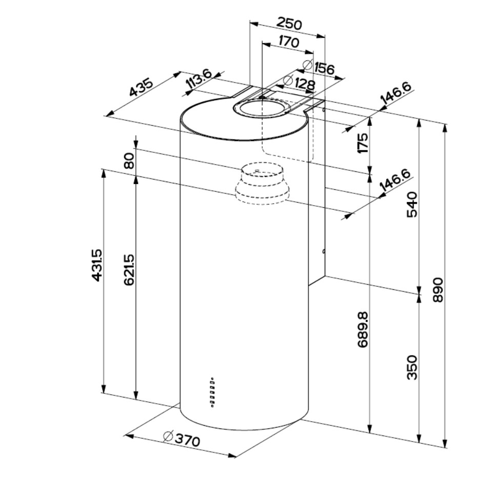 Vægmonteret emhætte – Rustfrit stål – Ø370 mm
