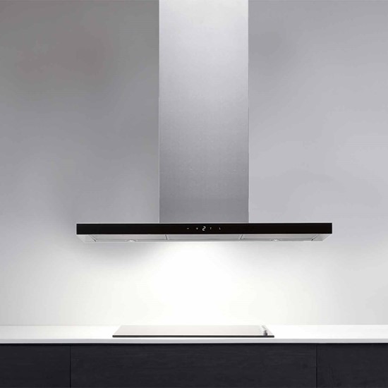 Vægmonteret emfang. Med ekstern motor for indv. montering til loft - Rustfrit stål / sort glas - 900 mm