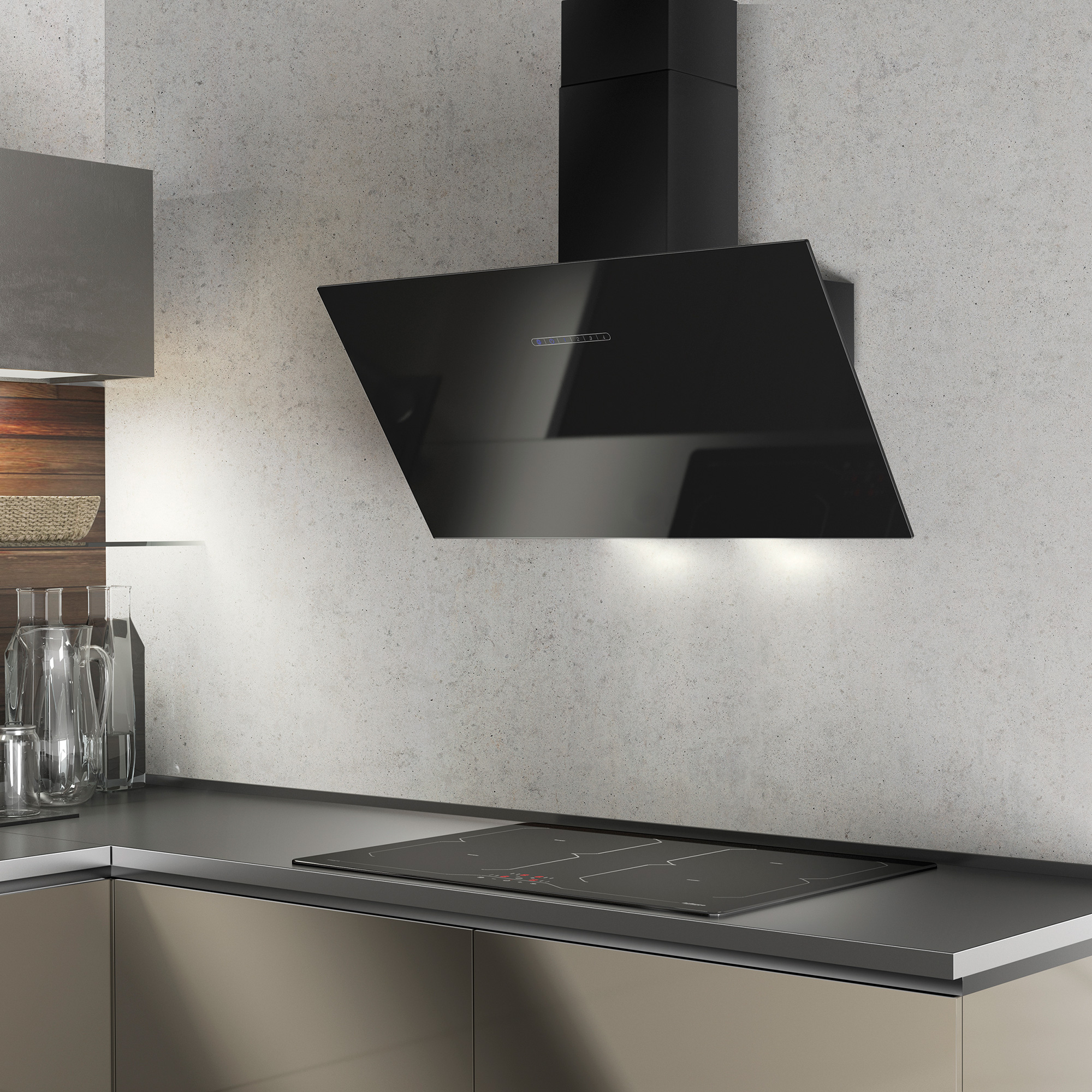 Vægmonteret emfang, skråtstillet. Med intern motor - Sort / sort glas - 800 mm - A
