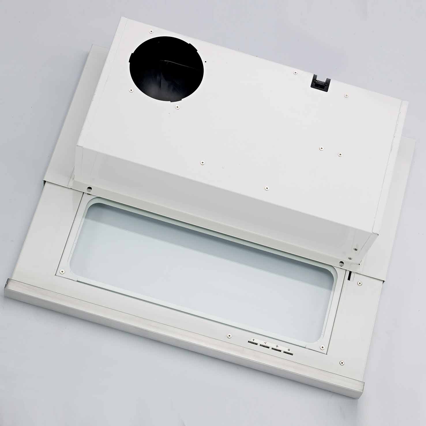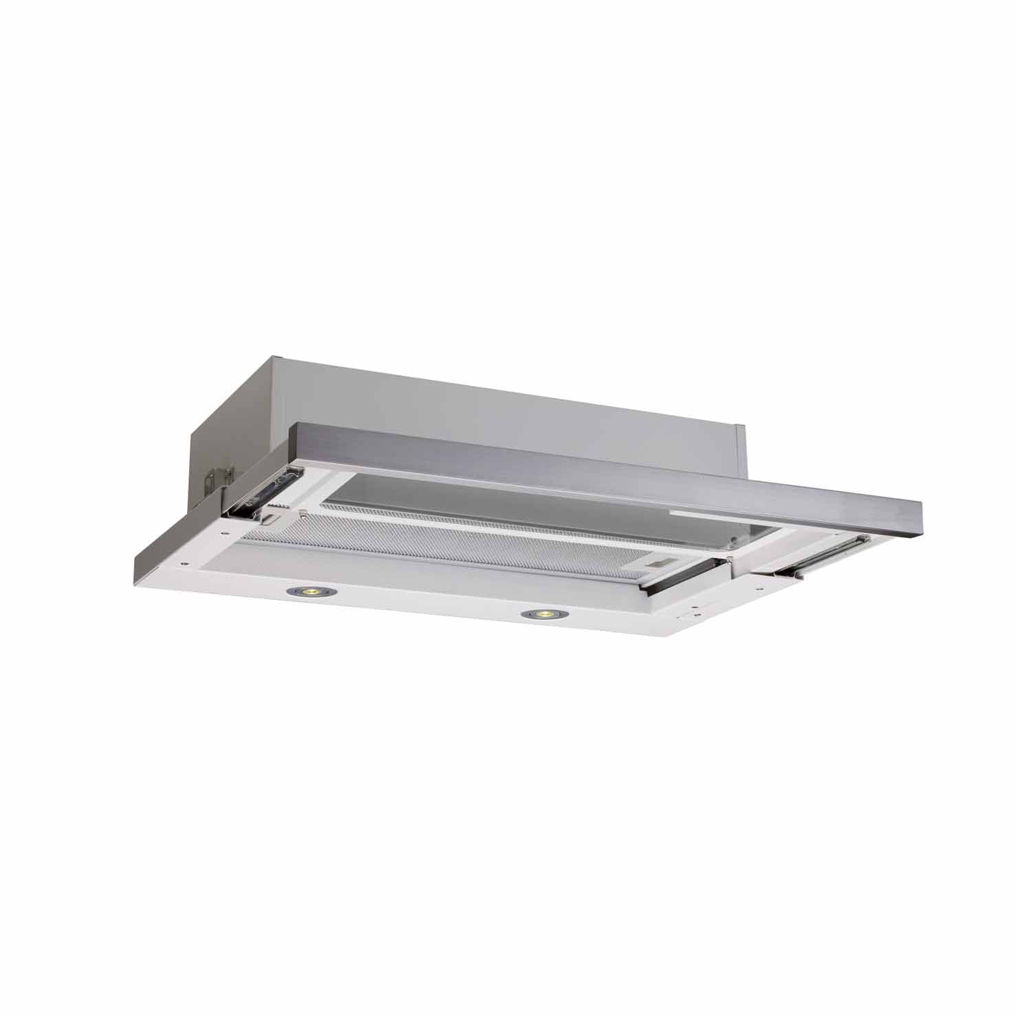 Udtræksemhætte. Med intern motor - Rustfrit stål / hvid / glas - 600 mm - Aftræk i venstre side