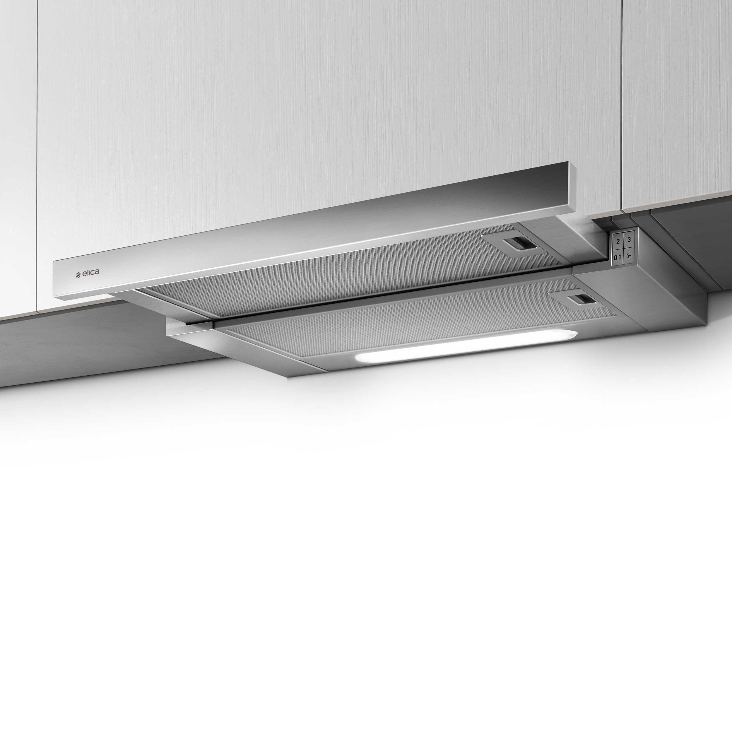 Udtræksemhætte - Med indbygget motor - Stål - Bredde 600 mm - Energiklasse A
