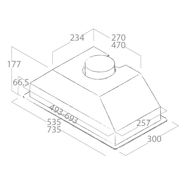 - Produkt (BxDxH) 735 x 300 x 177 mm