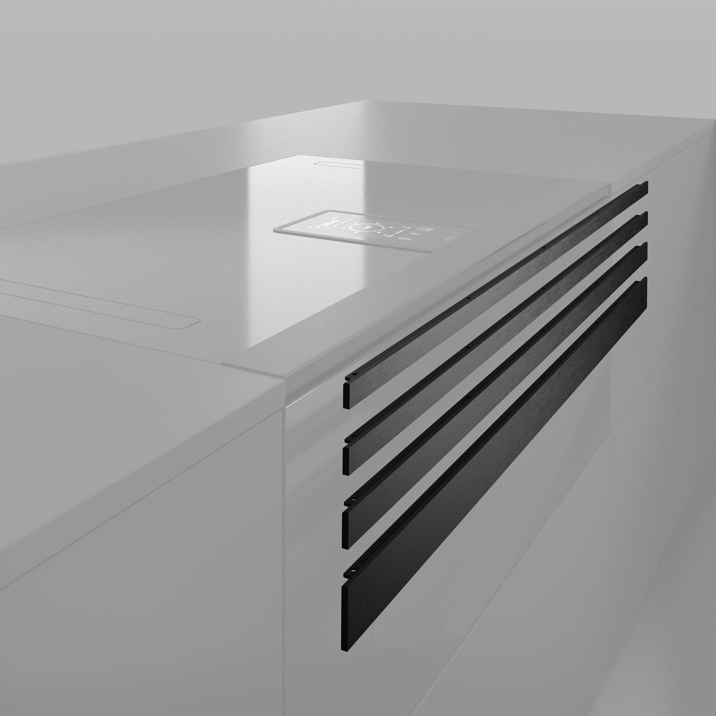 Frontprofil kit til planmontering (20 mm) sikrer en sømløs overgang mellem LHOV-enheden og køkkenbordpladen. Profilen matcher designet i sort anodiseret aluminium og giver et rent, professionelt udtryk.