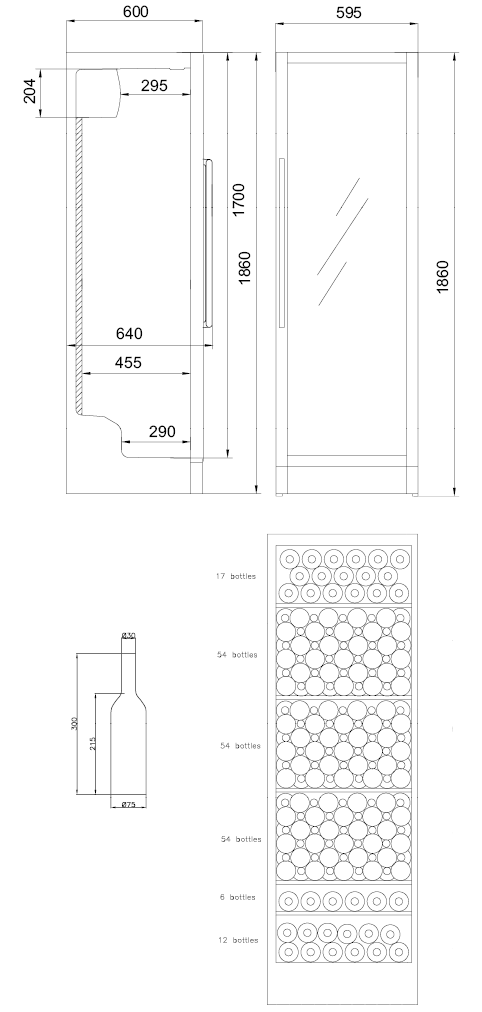 - Flaskekapacitet: Netto kapacitet for max. 197 flasker stk