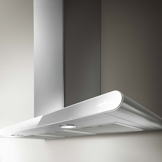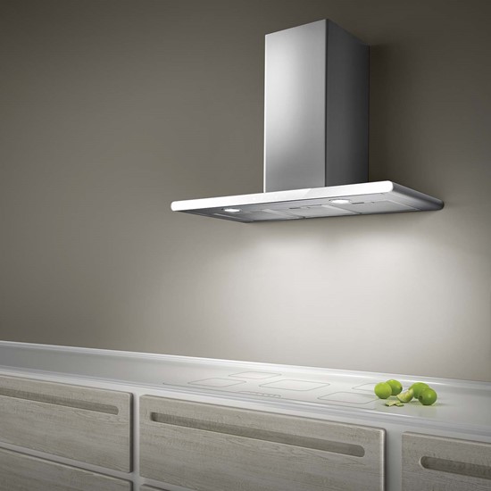 Vægmonteret emhætte - Med indbygget motor - Rustfrit stål / crystal white glas - Bredde 800 mm