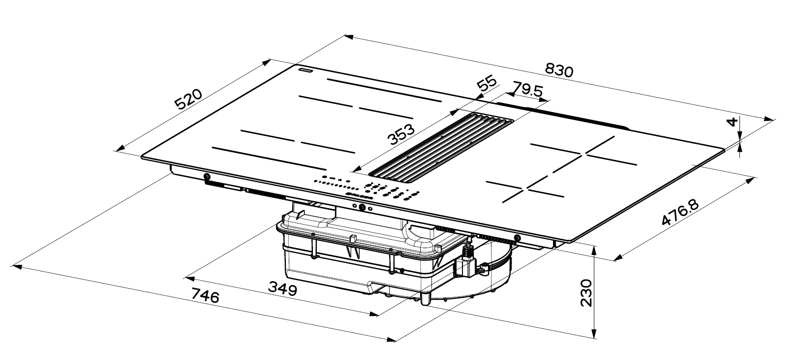 - Produkt (BxDxH) 830 x 520 x 230 mm