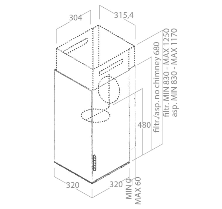- Emhætten er kun 32 cm dyb, men kan med vægbeslaget placeres i samme dybde som overskabe