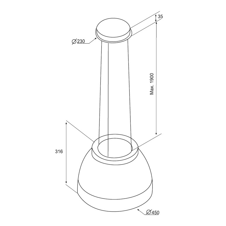 - Produkt (BxDxH) 450 x 450 x Max 1900 mm