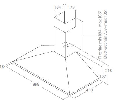 Vægmonteret emhætte - Med indbygget motor - Rustfrit stål - Bredde 900 mm