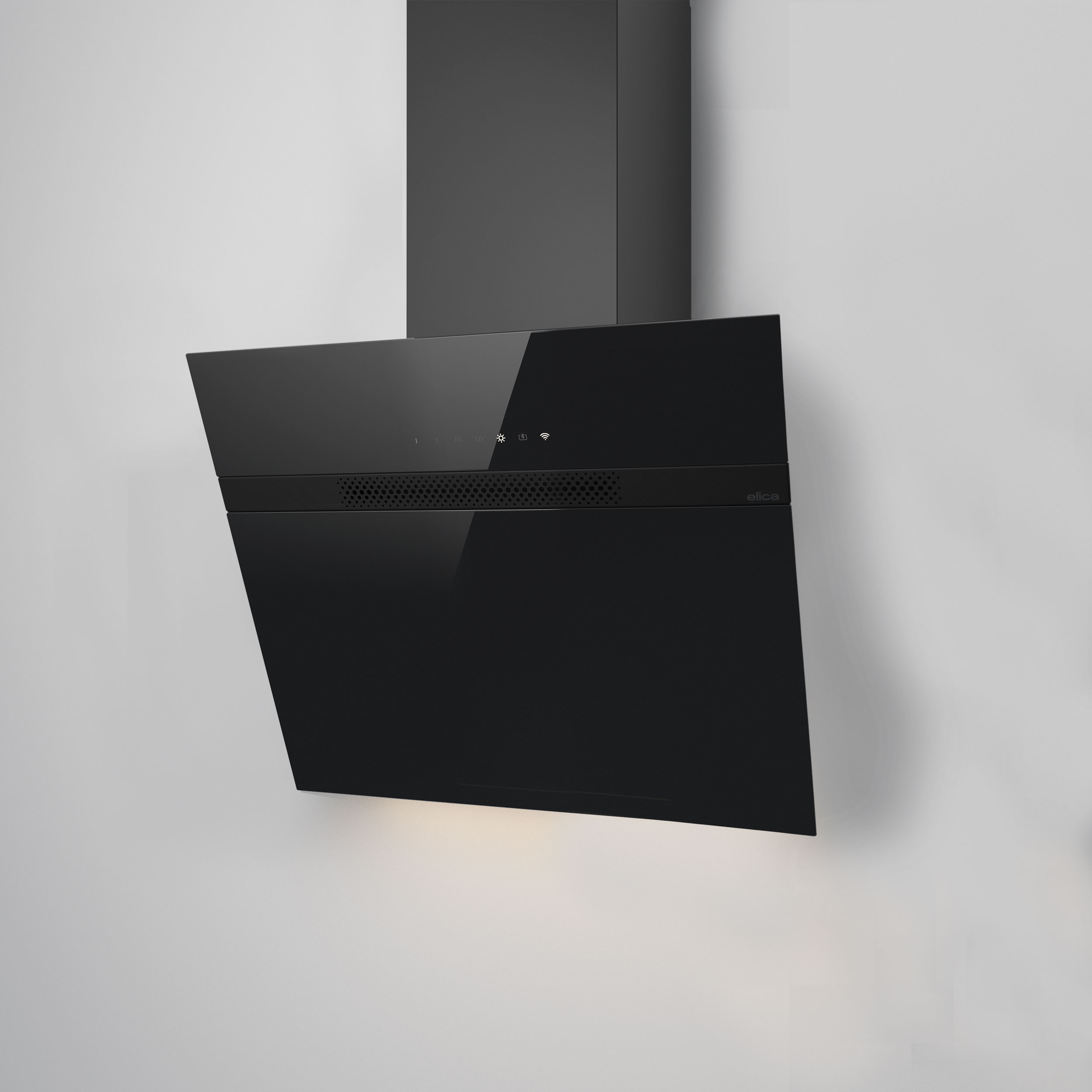 Vægmonteret emhætte, skråtstillet - Med indbygget motor - Sort - Bredde 600 mm - Energiklasse A+