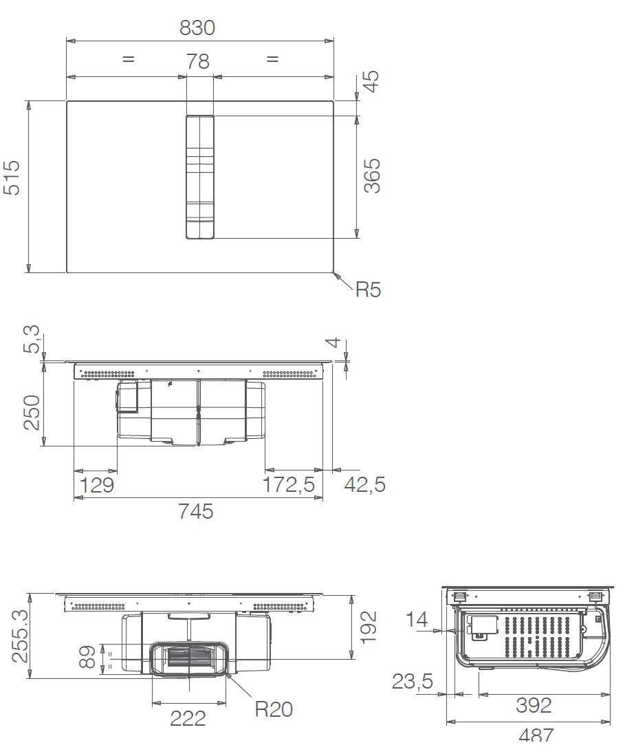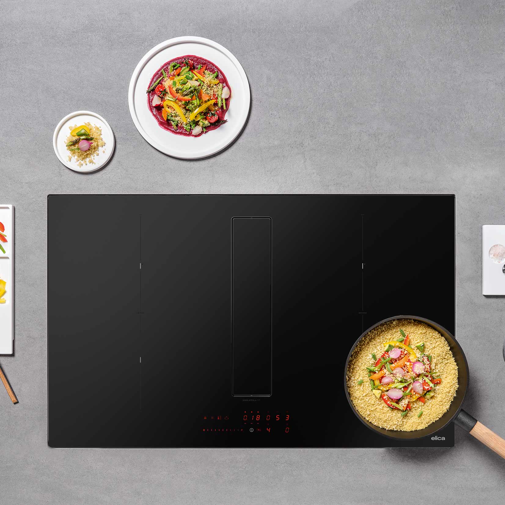 Kogeplade med integreret emhætte – 83 cm RAW glas