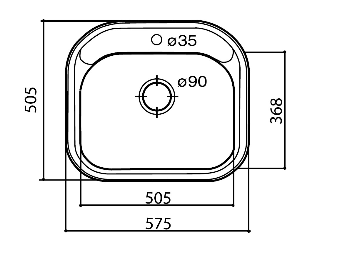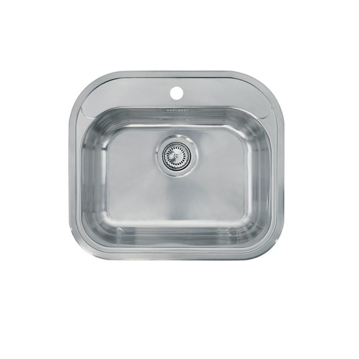 m/hul center, Stålvask, Enkelt kumme med bagkant. For under- eller planlimning - Rustfrit stål - 35 ltr