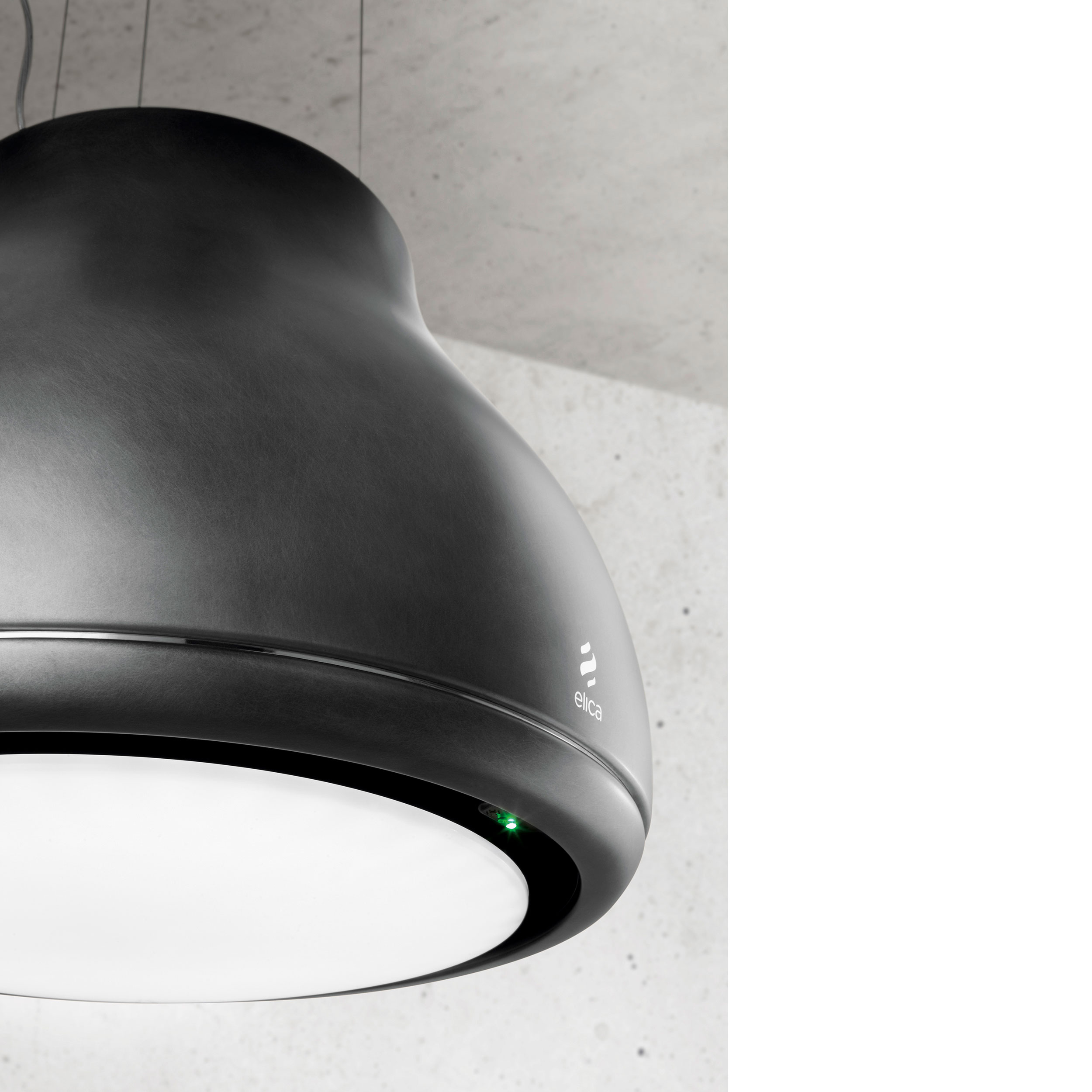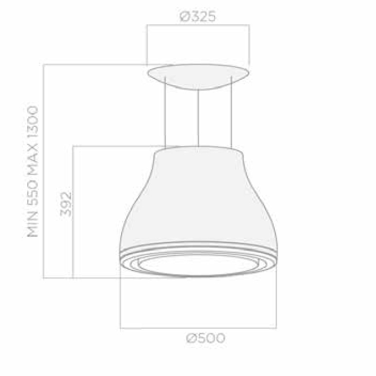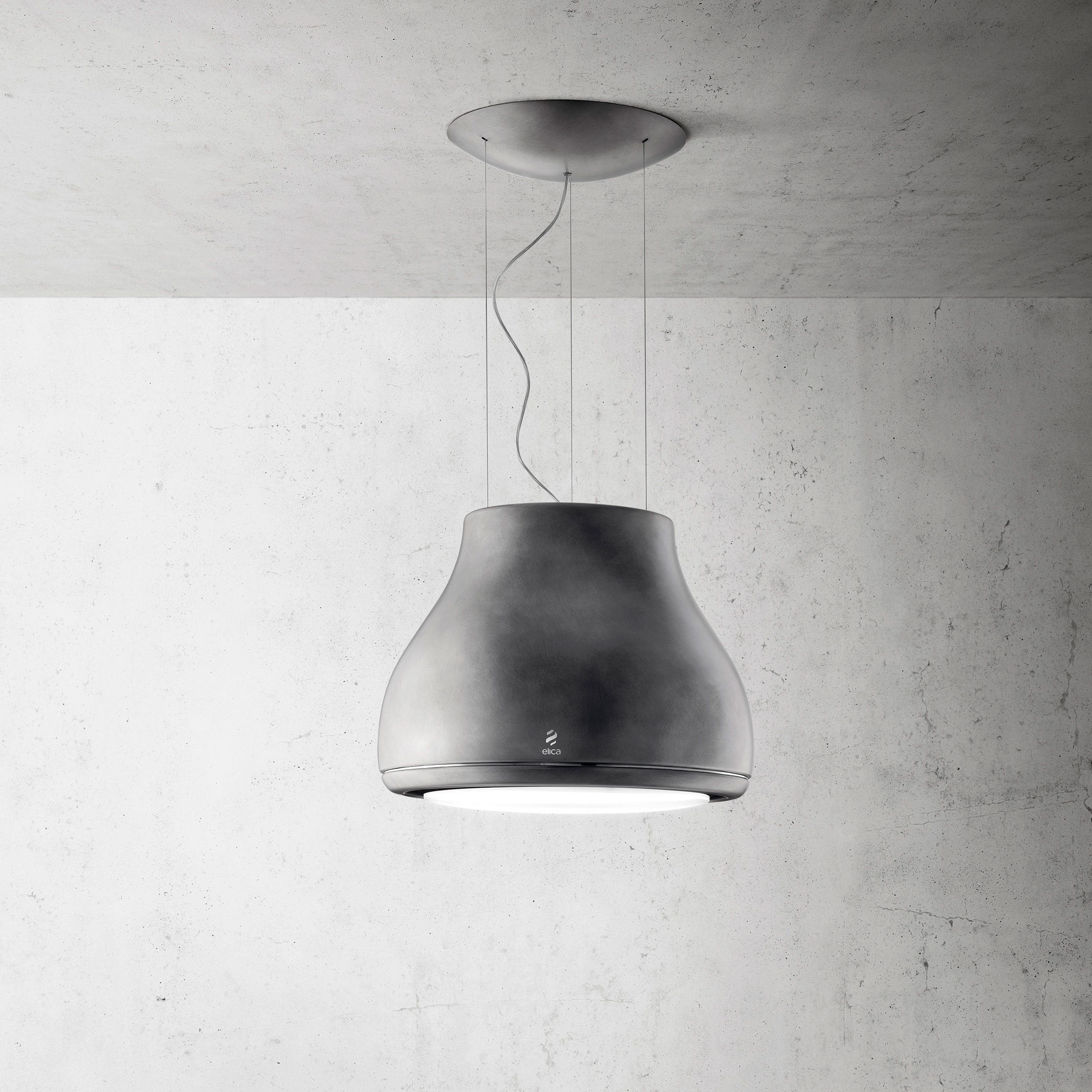 Wirehængt designemhætte i Peltrox-materiale, Ø 500 mm - Model for recirkulation