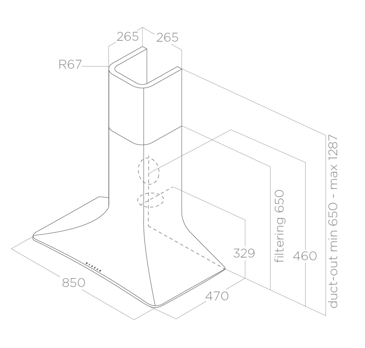 Vægmonteret emhætte – Glasfiber, støbejern – 850 mm – Energiklasse A