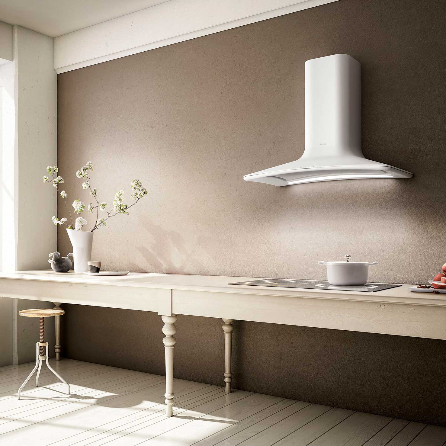 Leveres incl. long life recirkulationsfilter Med recirkulationsversionen er rørføringen til et punkt udenfor køkkenet ikke nødvendigt. I stedet renses luften ved gennemstrømning i aktive kulfiltre og føres derefter tilbage i køkkenet.