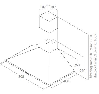 Vægmonteret emhætte - Med indbygget motor - Rustfrit stål - Bredde 600 mm - A