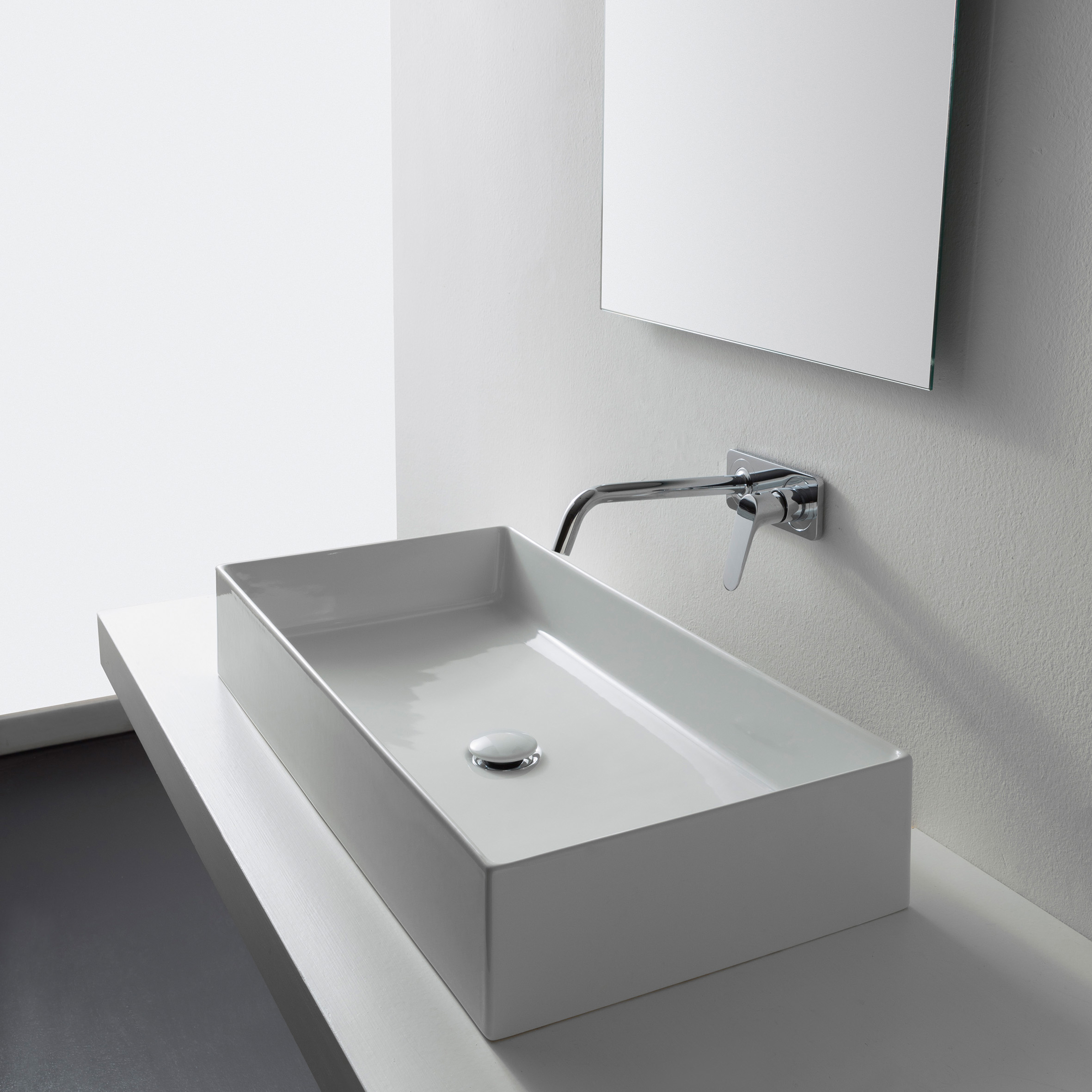 Badvask i hvid porcelæn. For montering på bord - Hvid porcelæn